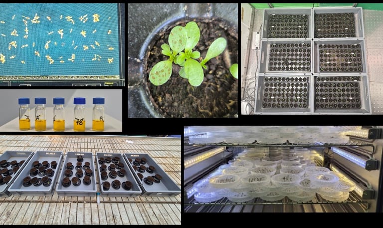 In this gallery, we present the experimental work carried out during the second year of our research project. The focus was placed on investigating the effects of isothiocyanates, beneficial soil microorganisms, and foliar applications of phenolic acids and their mixtures on Ambrosia artemisiifolia.